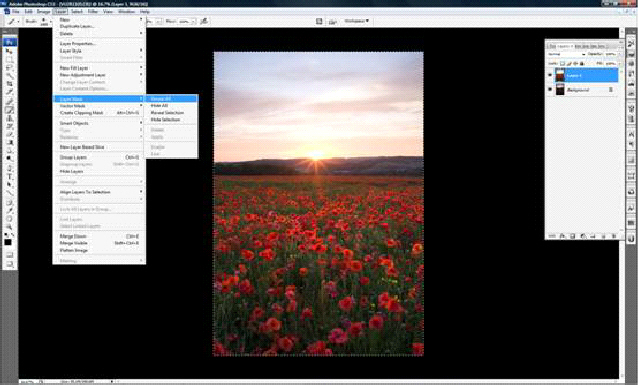 Then proceed to layer in the tool bar. Scroll down to layer mask -
